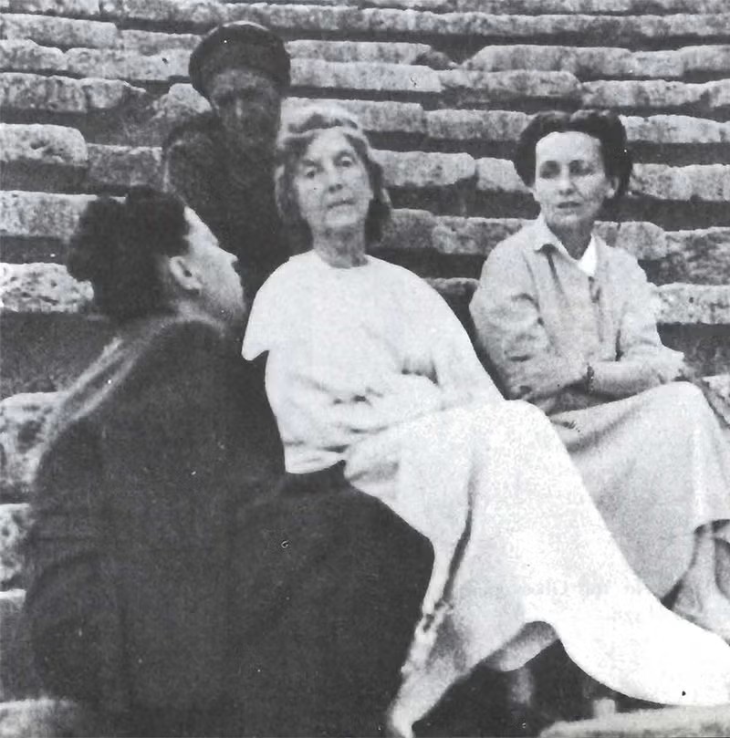 Elderly Eva at the final production of Prometheus Bound, source unknown Full size 800 × 809 pixels THE PEACE WEAVER Eva Palmer Sikelianos Elderly Eva at the final production of Prometheus Boundsource unknown Previous image Next image